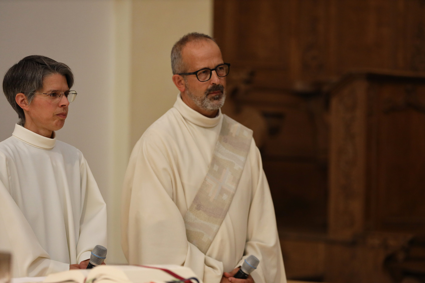 La théologienne Marie-Andrée Beurret et le diacre Didier Berret ont été installés comme délégués épiscopaux de l’évêque de Bâle, Mgr Félix Gmür, pour le Jura pastoral, le 1er septembre 2022, lors d’une célébration eucharistique à l’église Saint-Marcel de Delémont (JU).