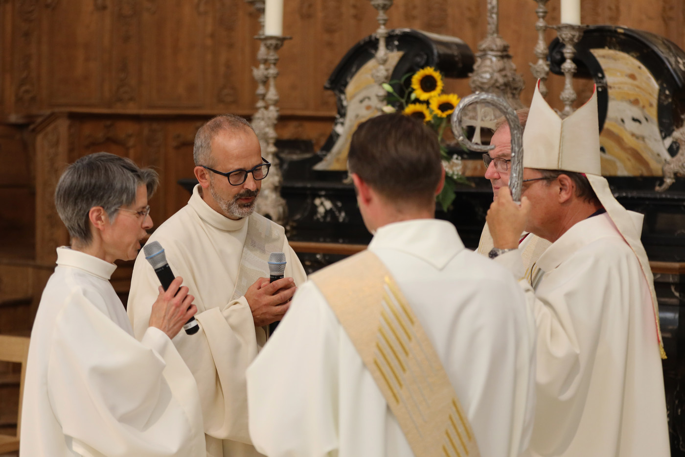 «Oui je le veux», ont-ils répondu à Mgr Félix Gmür la question de savoir s’ils voulaient travailler «dans le partage des tâches, en collaboration avec les agents pastoraux, l’ensemble des baptisés, en particulier les Conseils pastoraux et les Conseils des corporations ecclésiastiques».