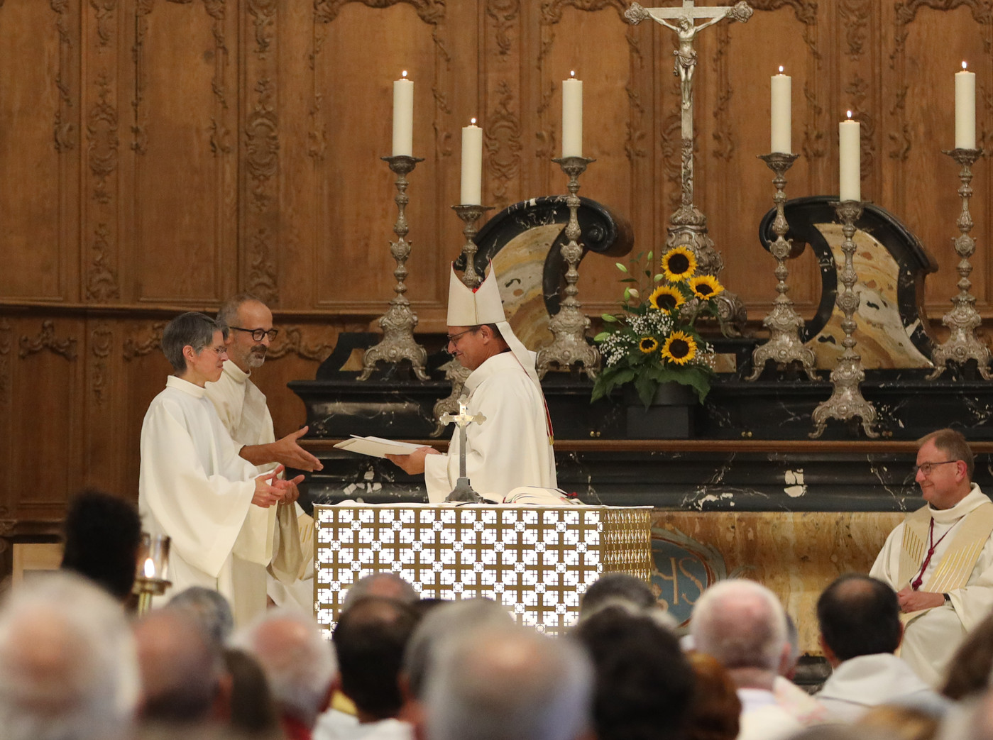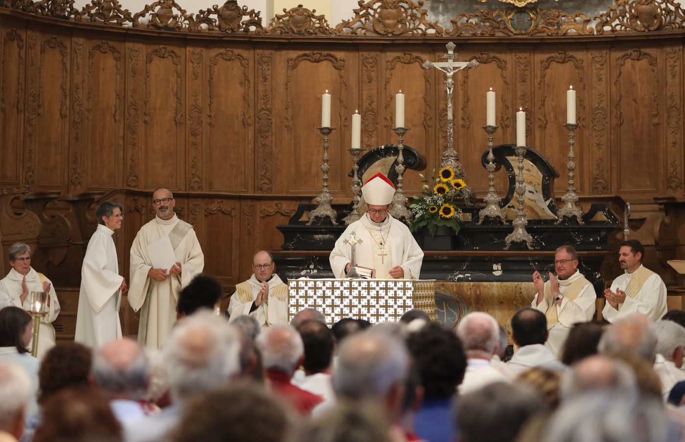 «Notre voeux c’est que toutes vos voix viennent compléter les nôtres» a lancé Marie-Andrée Beurret aux 400 personnes venues entourer ses leurs nouveaux nouveaux délégués épiscopaux. «Nous désirons faire Église ensemble», a pour sa part indiqué le diacre Didier Berret, tous deux installés pour la partie francophone du diocèse de Bâle.